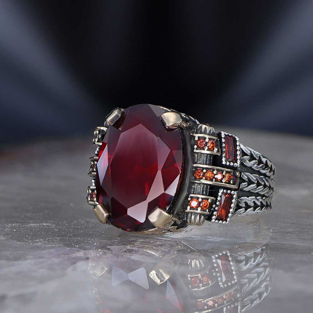 Chain Series 925 Sterling Zircon Stone Men's Silver Ring